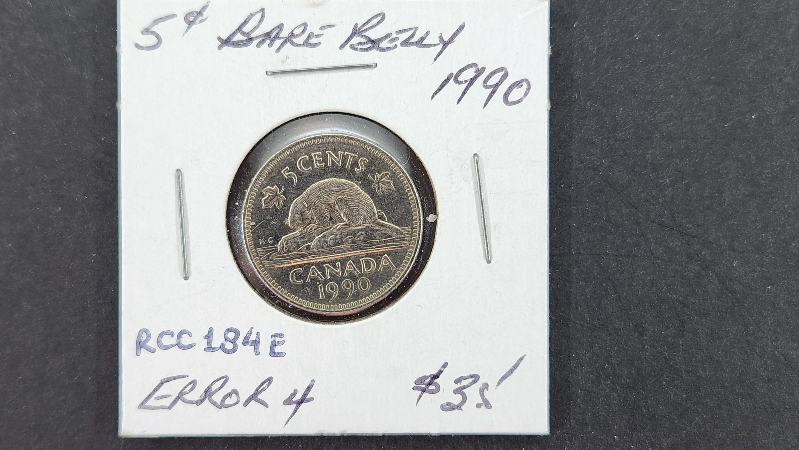 Canada 5 Cents 1990 Bare Belly Error 4